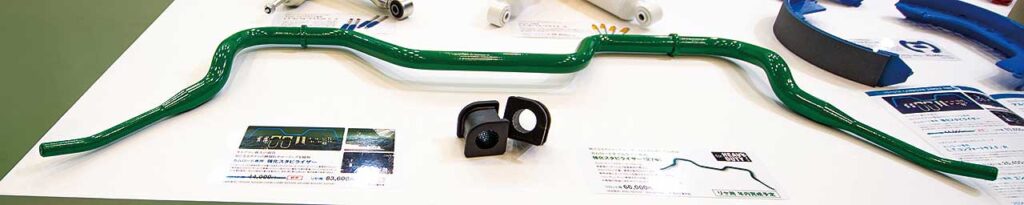 強化スタビライザーは、従来のものよりもさらに剛性の高い重量用の物を使用することで、高速道路の進入時やカーブでの安定性が向上し、より安全で快適な走行が可能になる。